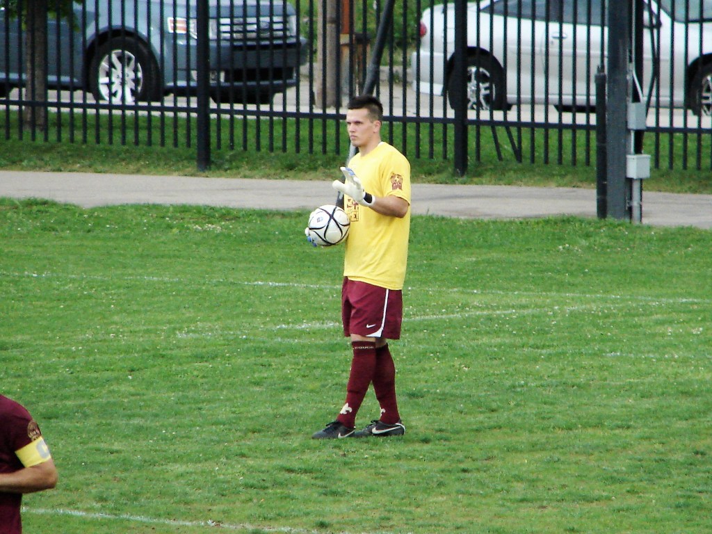 The opening goal. In the 11th minute, the ball comes in from Tom Oatley to Stefan St. Louis, who puts it past Ben Yabrow.