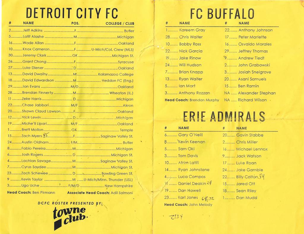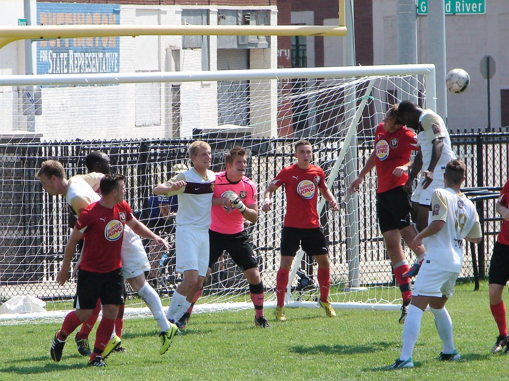 It was a scorching hot day. As the game progressed in the second half, and Le Rouge’s chances at victory diminished, the verbal taunts were getting nastier. During the second half I positioned myself along the fence on the Supporters’ side near the north goal that DCFC attacked. Within the final ten minutes, I heard a guy – one of many on that day – calling Erie keeper Dan Mudd some unflattering names. A police officer – I don’t recall if it was a DPS officer or a City of Detroit police officer – told the guy to knock it off. He took offense to being singled out of everyone in the area that was verbally abusing Mudd and the other Erie players. The cop began flexing his power by saying he could have him removed from the stadium and arrested. The fan persisted in questioning why him over everyone else. For a moment I thought I was going to have to pull my business card out and offer it to the kid in the event the officer followed through. Cooler heads prevailed.