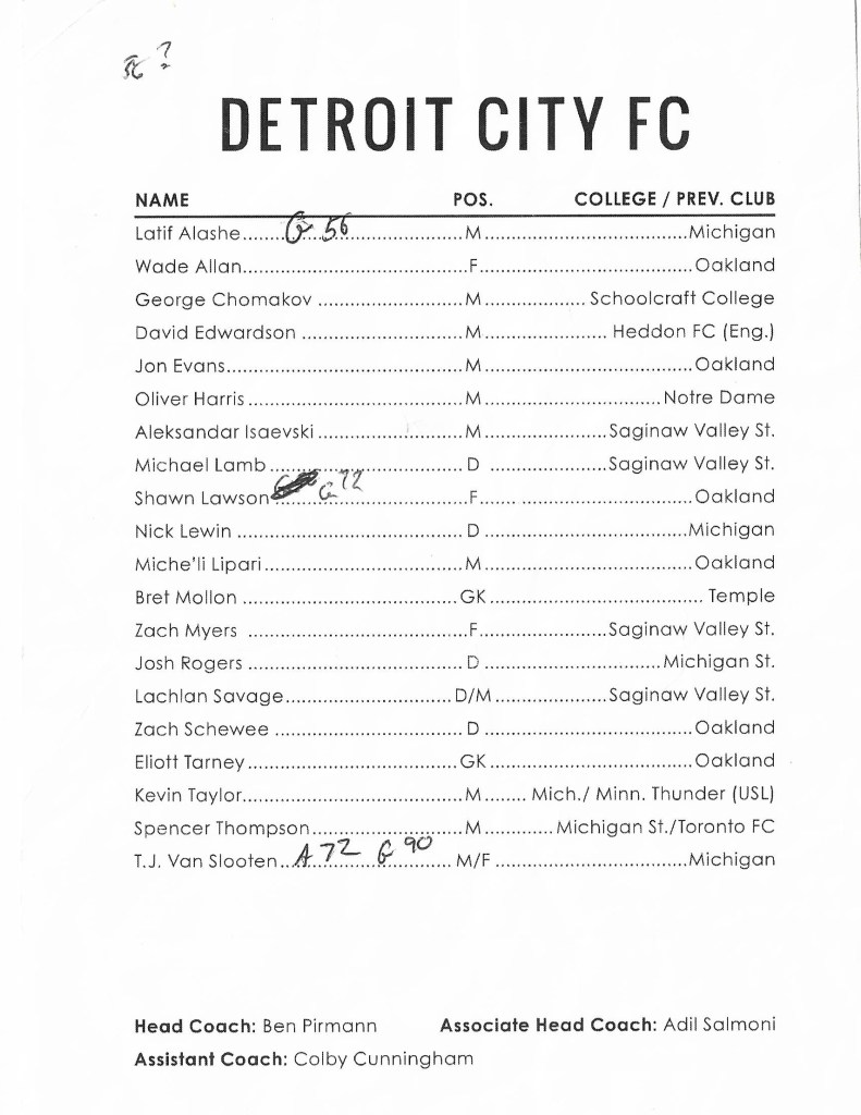 This was an important win. A loss in Buffalo prior to this match, plus the win, made Sunday’s matinee in Lansing extremely important. Detroit’s 8-2-3 record of 26 points against Lansing’s 8-3-2 record of 27 points put City in a must-win situation in order to grab first place and advance to the playoffs.
