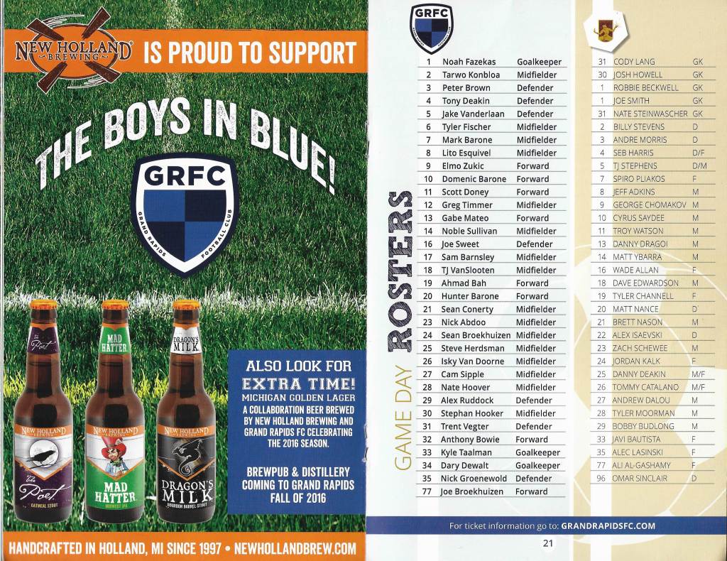 We took the lead early, but then allowed the next three, taking us down 3-1 into half time. They were beating us on crosses in the box. Dave Edwardson drew us within reach in the 59th minute. But as we pressed for the equalizer, it left us exposed in the back, allowing Grand Rapids to bang two more past us.