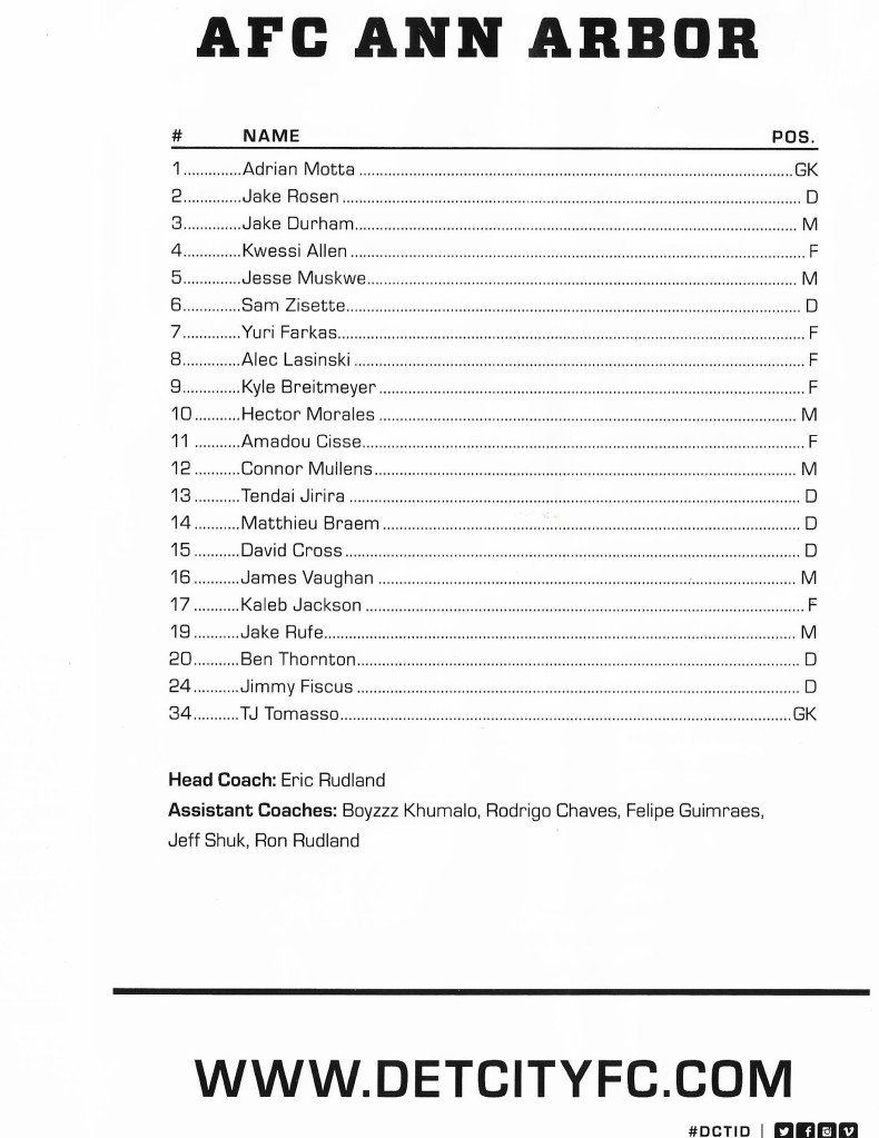 Rescheduled to a Tuesday night was a frustrating conclusion to the evening.  Why did the soccer gods attempt to drown our momentum and postpone our clash against AFC Ann Arbor?