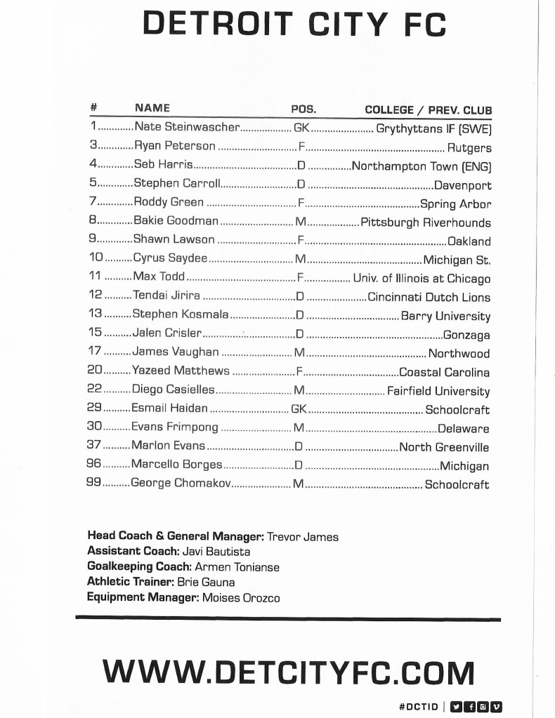 Two days after this friendly, Chattanooga FC, Detroit City FC, and Oakland Roots SC were accepted as members of NISA.