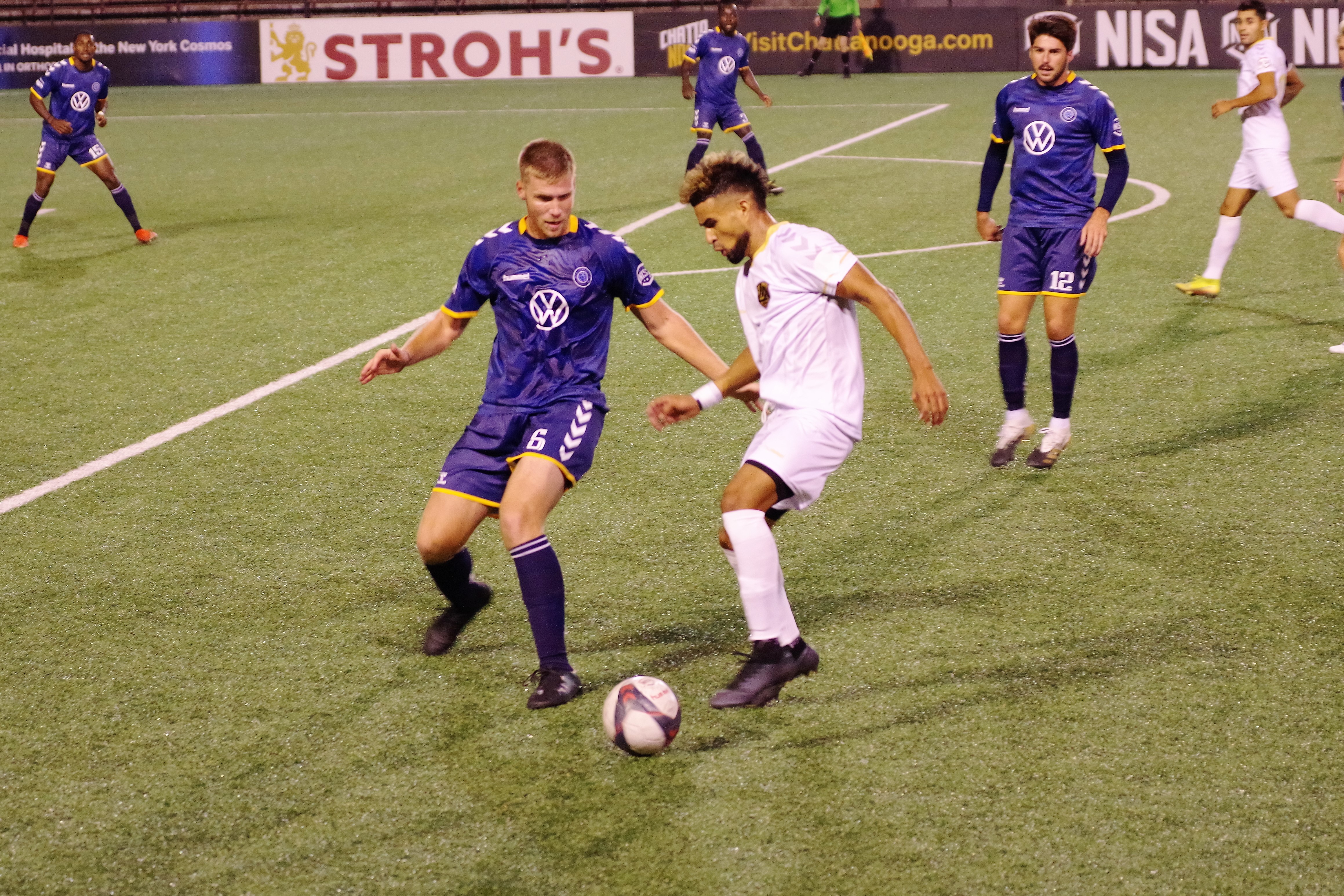 In the embers of the first half, Kyle Carr, who, with Kyle Marcano, subbed in for Richard Dixon and Jowayne Laidley in the 28th minute, delivered a corner kick that Sean Hoffstatter’s head directed into the net to give Chattanooga FC a 1-0 lead at halftime.