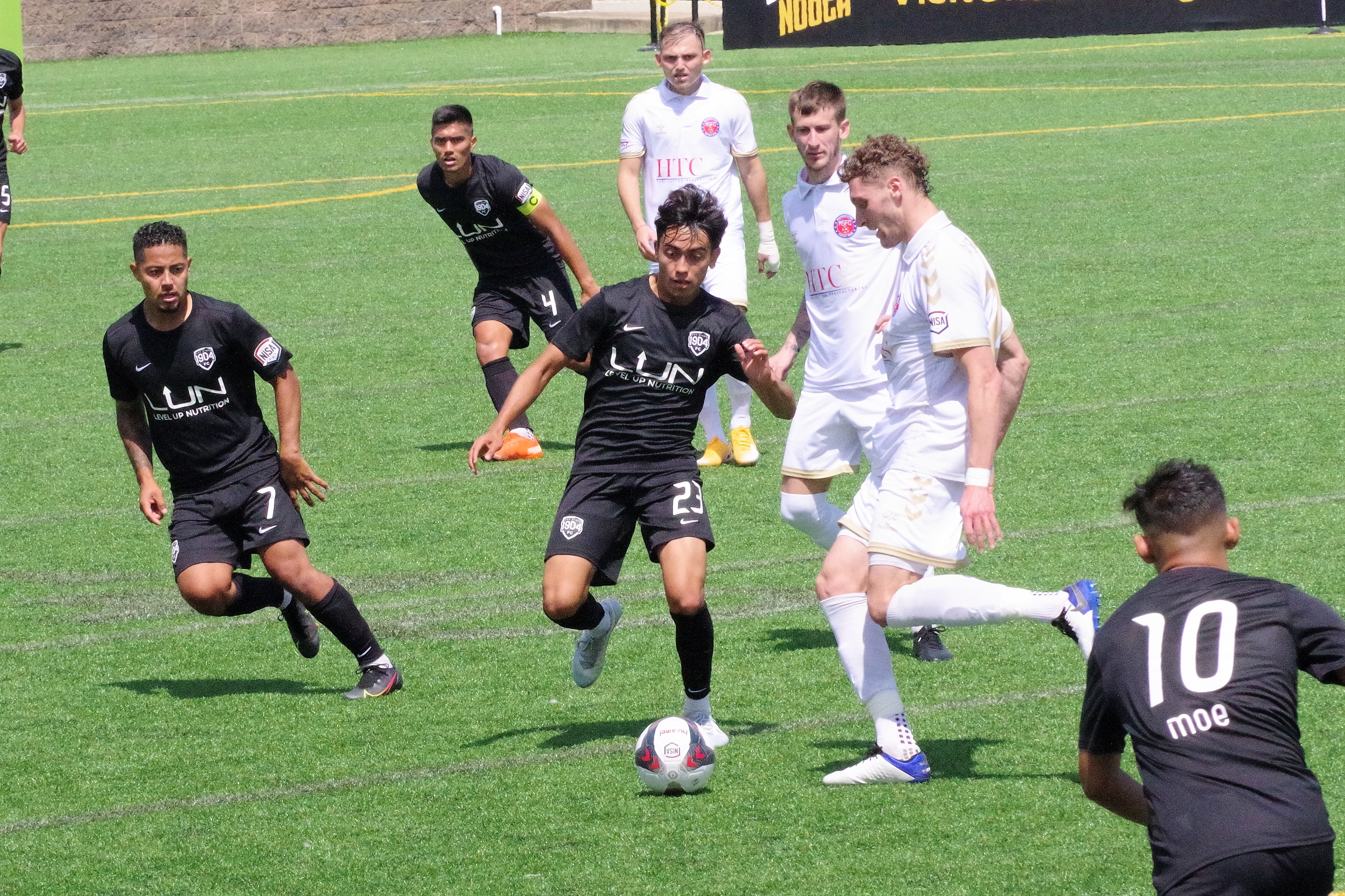 From about the 30th minute on, the Stars took control of the match, and 1904 looked out of sorts. In the 32nd minute, Amoo-Mensah just missed the net on a Stars corner kick. In the 38th minute, Steve Juncaj was wide open and fired a shot that Misha Marson caught. As the half wound down, 1904’s Dallin Cutler ran over Carl Schneider just inside the Stars’ half of the center stripe, earning 1904’s second yellow card of the match.