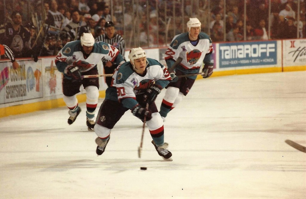 Then, in 1996-97, he photographed for Great Lakes Hockey Alliance, a Michigan-based hockey publication. Kitchen covered the Detroit Vipers of the International Hockey League.