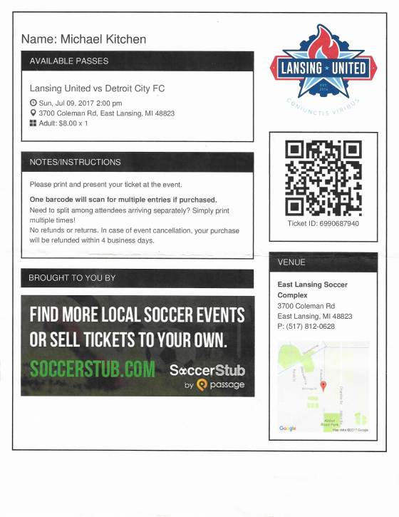 July 9, 2017 NPSL Regular Season East Lansing Soccer Complex, East Lansing, MI Lansing United 1, Detroit City FC 2 … More